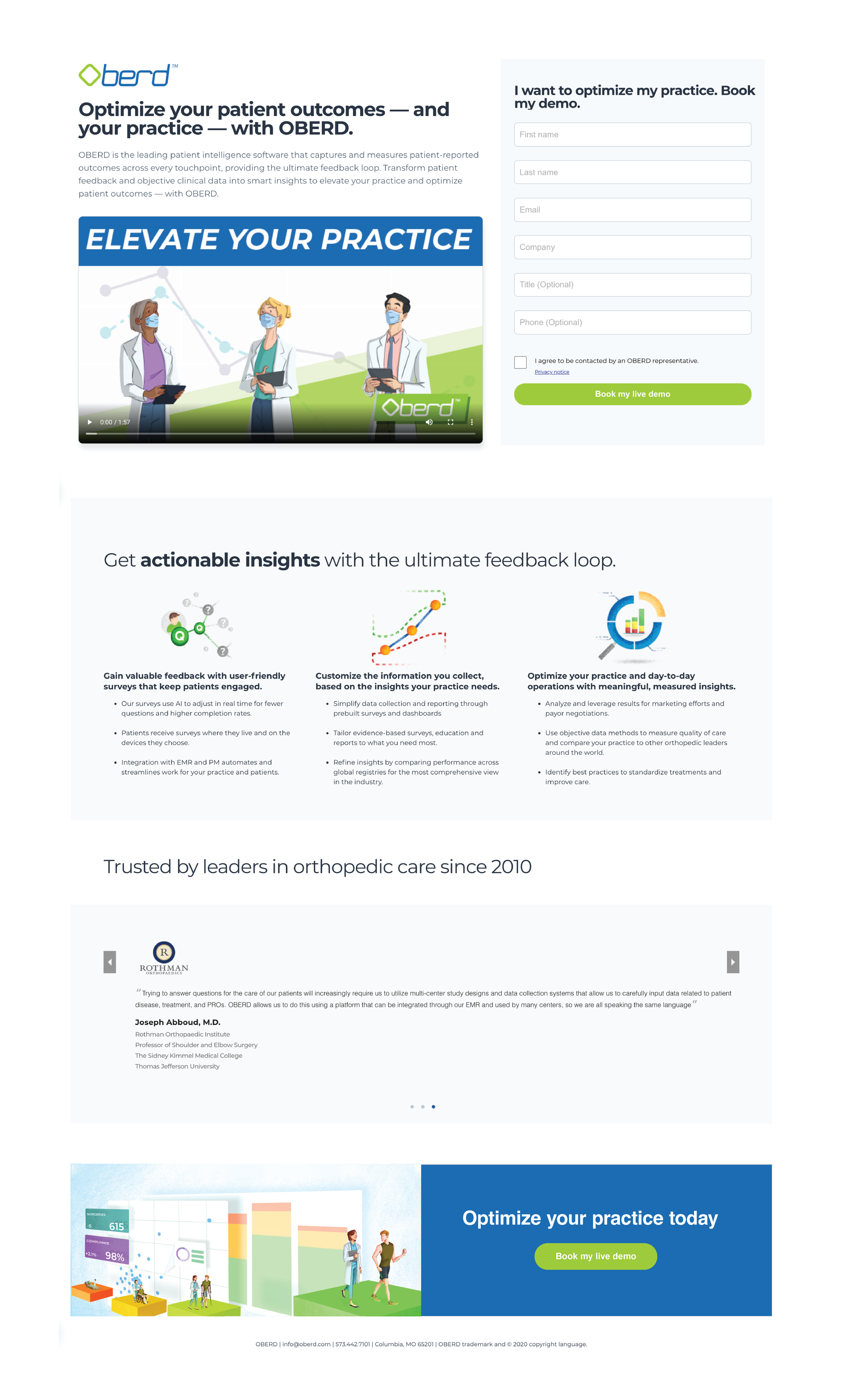The client needed a complete campaign to educate orthopedic surgeons and practice administrators about Oberd’s software and its ROI. The objective was to generate leads and schedule demos, but there needed to be a cohesive visual system across channels to clearly communicate their value proposition and product benefits.